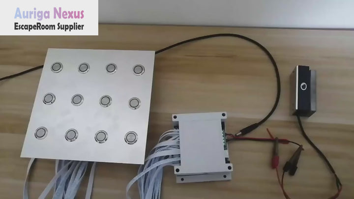 How to Play: There are three rows of four buttons in each row. Each button can display red and green. Pressing a button switches the color of the button it's pressed and the two buttons to its left and right. The colors are randomly displayed upon power-up. When all buttons switch to green, you complete the level.
