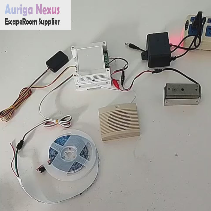When shouting, the LED light strip turns green. If you shout continuously for a certain period of time, the mechanism will be triggered. Upon successful triggering, the light strip flashes red three times, then turns solid red. A sound effect will sound as the lock is unlocked. Reset: Power off and then on again or reset via the remote control.