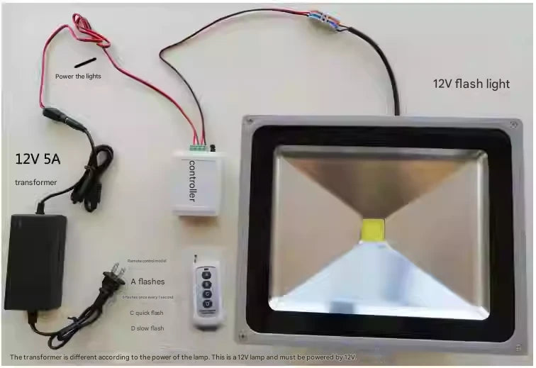 Remote triggering: A button (press once for a single flash), B button (press and hold for a rapid flash, release to stop), C button (flashes once every one second), D button (press and hold for a slow flash, release to stop).