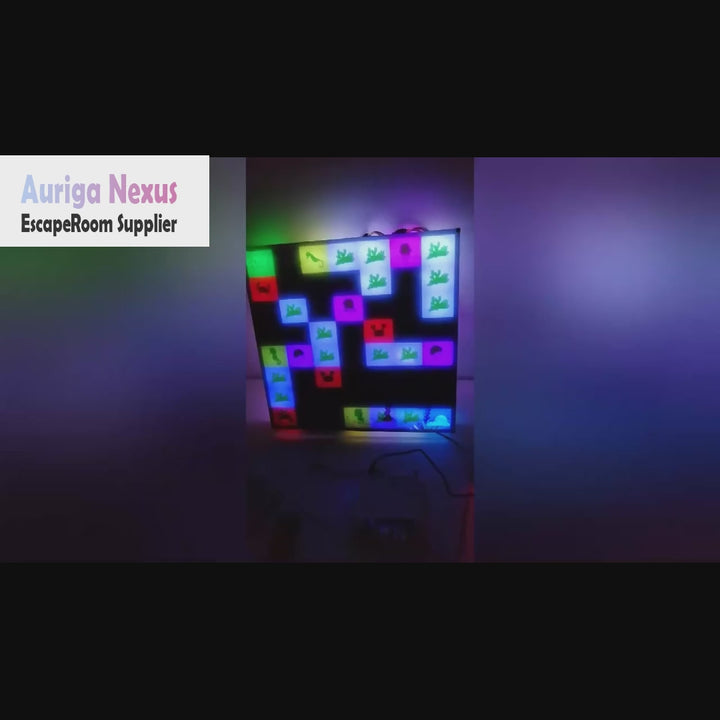Instructions: When the two wires in port 1 touch, the light box illuminates and the mechanism activates. Four creatures appear on the light box: a crab, an octopus, a seahorse, and a coral reef. Each creature has its own movement pattern (each time you press a button, the crab moves one square horizontally, the octopus moves one square vertically, the seahorse moves one square diagonally, and the coral reef remains motionless). Each creature moves within three squares, starting from the last square and starting over again from the first. Each press of the left, right, up, or down arrow keys moves the green block one square relative to the previous one. Successfully move the green block in the upper left corner from the GO position to the pearl in the lower right corner, and then successfully pick the pearl to complete the level. After completing the level, the two relays energize, and the power is turned on again to reset. If the green block touches the crab, octopus, or seahorse while moving, the game fails and you need to start over.