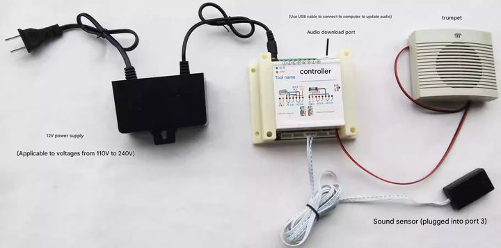 How to Play: Clap your hands to a set rhythm near the sensor to trigger a mechanism (unlock, light, or control a lever). You can change the rhythm code and sound effects. The controller can directly power the 12V electromagnetic lock.