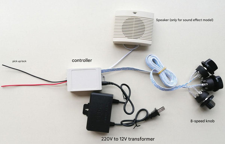 How to Play: Each knob has eight default settings. Turning each knob to a specific position triggers the lock and lights. The sound effect version also produces a sound effect when the mechanism is triggered.